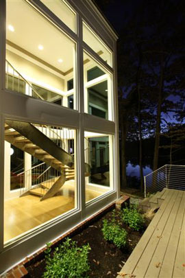 THE SINGULAR STAINLESS STEEL STAIRCASE (A BEAUTIFUL WORK OF ART) AND THE STAINLESS STEEL RAILS AND GUARDS ALONG THE DECKS AND PORCHES REFLECT THE POWER AND BEAUTY OF T HE HOME